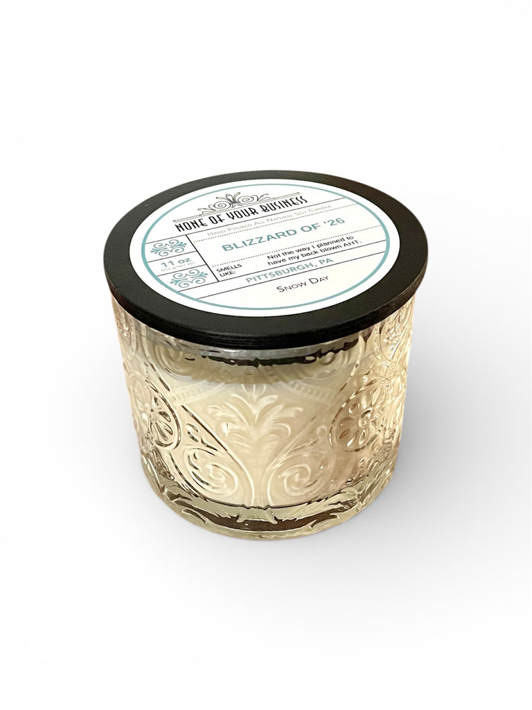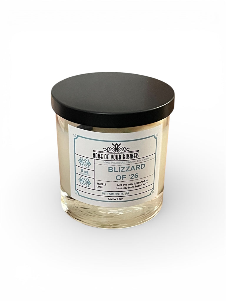 Smells Like: Not the way I planned to have my back blown AHT. Grab your sleds, scarves, and snowsuits because it’s going to be a cold one! Inspired by true events in January of 2026, this fast moving, cold as hell Polar Vortex had us all spiraling! This candle takes on the cool, crisp, sweet icy scent of freshly fallen snow.